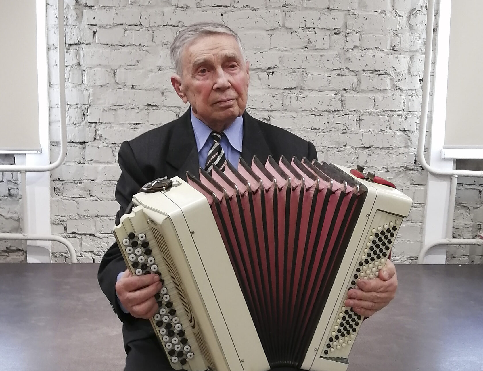 У меня уже было две младших сестренки, и меня решили отдать в детский сад. Мест не было, но когда отец сказал, что я умею играть на гармошке, меня взяли. Так я со своей гармошкой вместе с другими ребятишками стал принимать участие в концертах для раненых бойцов и командиров в госпиталях Ирбита. Раненые бойцы подсаживали нас к себе и старались угостить конфетой, яблоком или кусочком сахара.