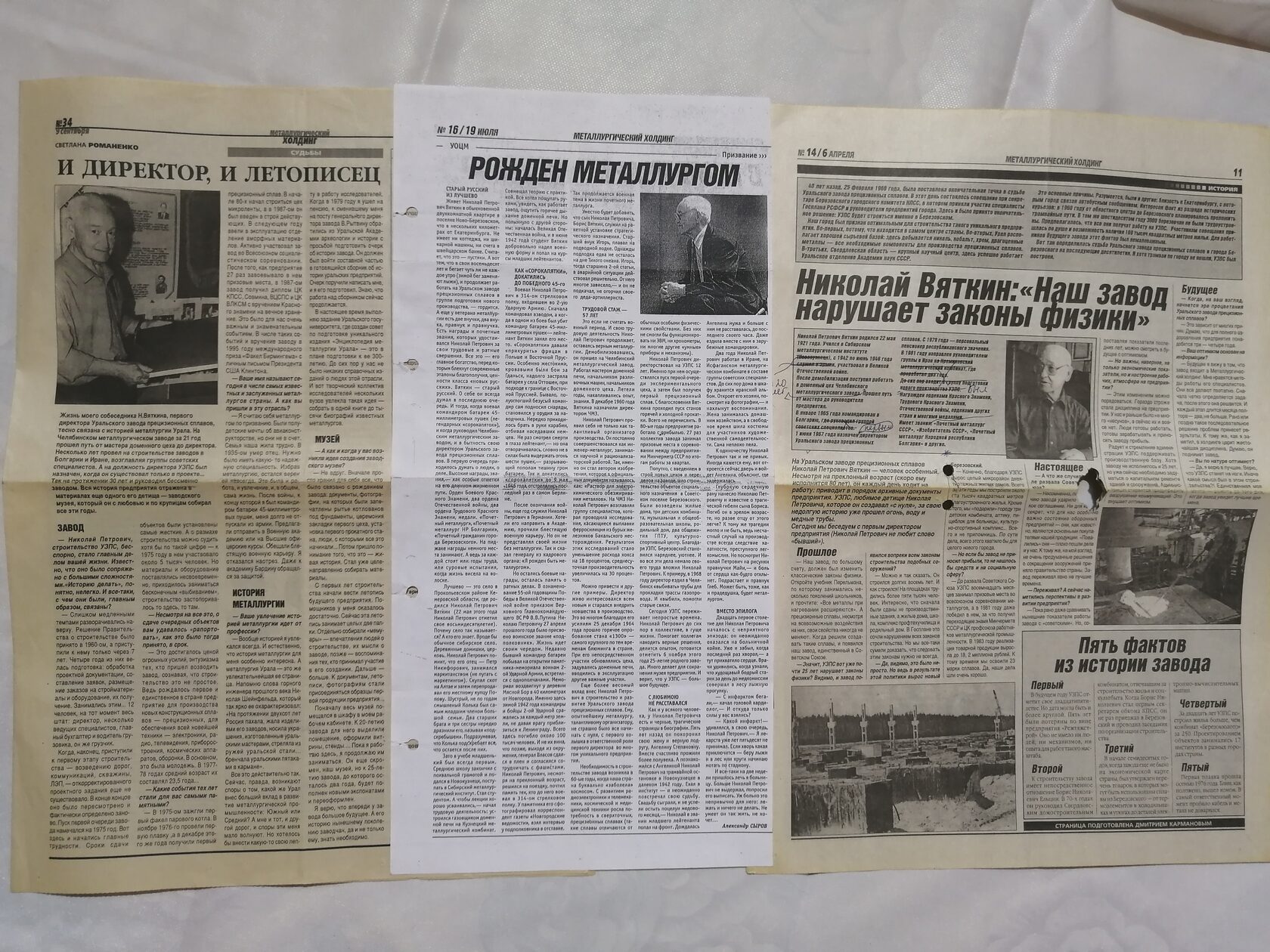 Подготовлено Мариной Суриной по материалам газеты «Металлургический холдинг»: «Рожден металлургом» А. Сырова, «Николай Вяткин: «Наш завод нарушает законы физики» Д. Карманова,